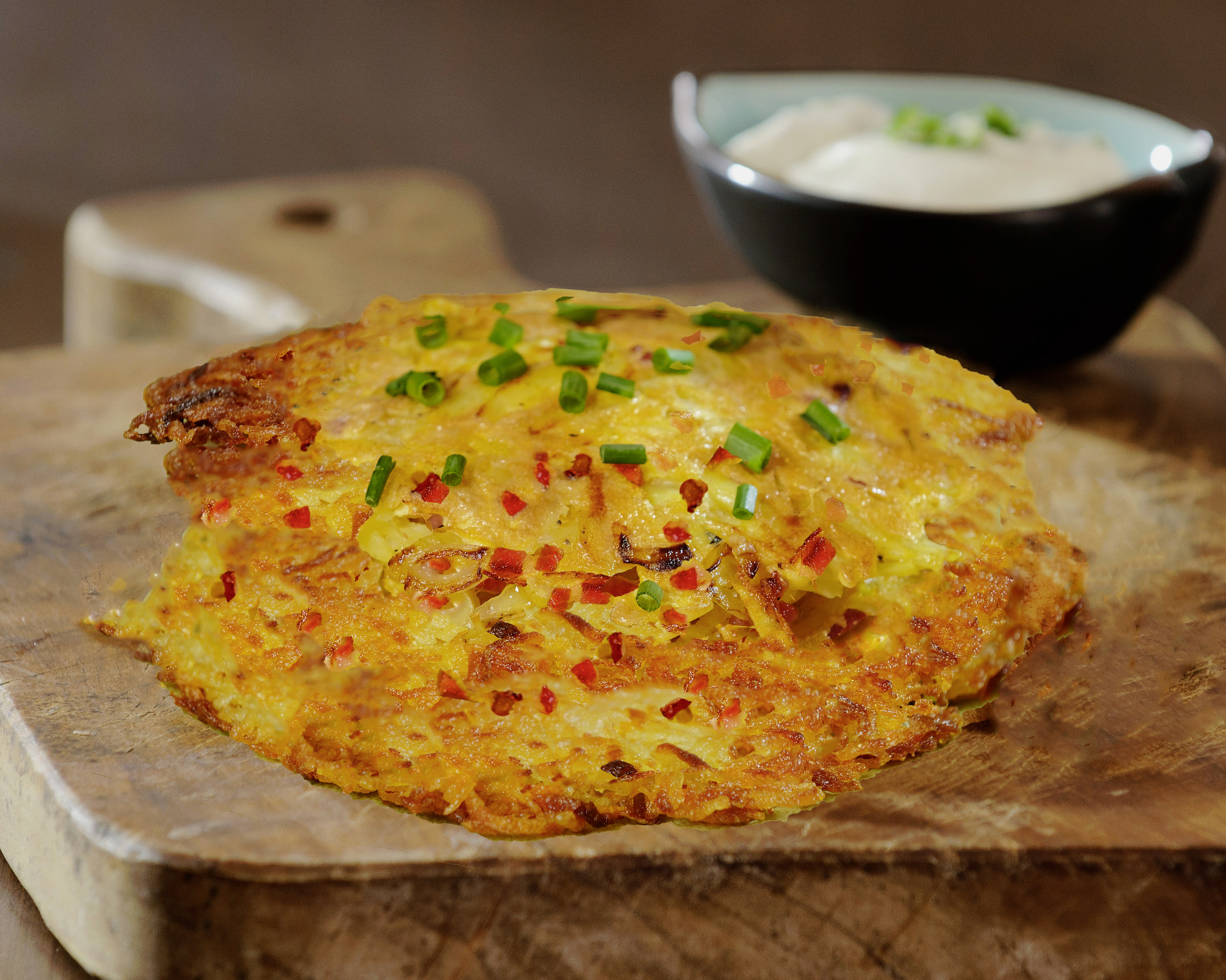 Reibeplätzchen und Gemüse Reibeplätzchen