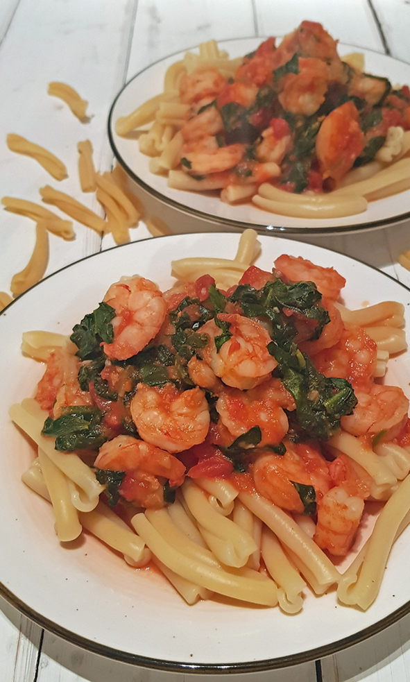 Bei meinen Garnelen gibt es nun noch Pasta dazu. Auch die bekommt ihr selbst gemacht aus kleinen Manufakturen in den Hofläden oder wagt euch einfach selbst dran. Nun würden eigentlich 5 Minuten reichen, um alles aufzuessen, weil es soooo lecker ist. Aber ich hänge lieber noch ein paar 5en hintendran und genieße in Ruhe....