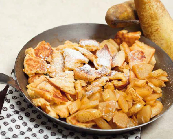 Eines ist aber bei der Zubereitung wichtig, niemals, nie den Teig in der Pfanne verrühren, sondern nach dem Wenden mit zwei Holzkellen zerrupfen. Nur so bleibt er fluffig und optisch so schön wie auf der Alm.