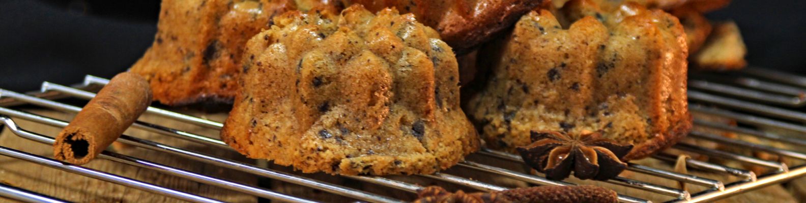 In der Form kurz abkühlen lassen, herausstürzen und auf einem Kuchengitter vollständig abkühlen lassen. Verwendet man kleine Kuchenformen, verringert sich die Garzeit entsprechend.