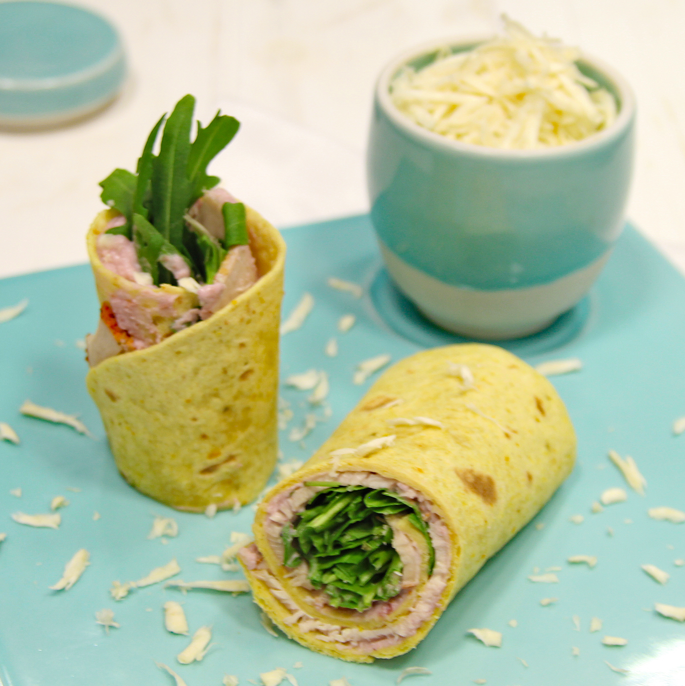 Wrap mit Hühnchen, Rucola, Meerrettich und Preiselbeeren