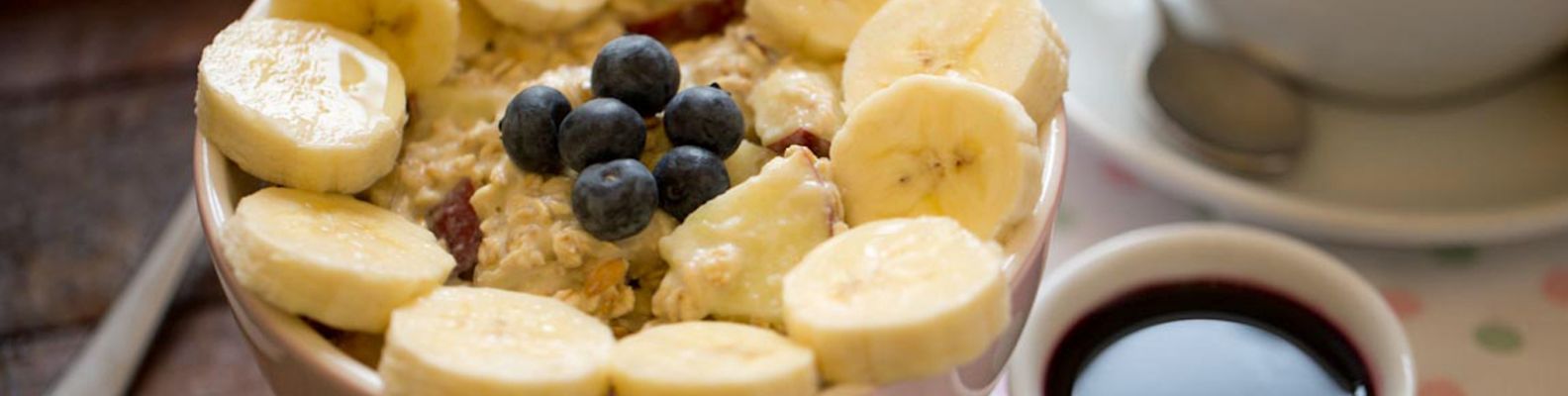 Die Creme mit den Haferflocken und Haselnüssen verrühren. Ein Teil des Obstes unterheben und in Portionen teilen. Über jede Portion 2 EL Heidelbeersaft geben und mit dem restlichen Obst dekorieren.